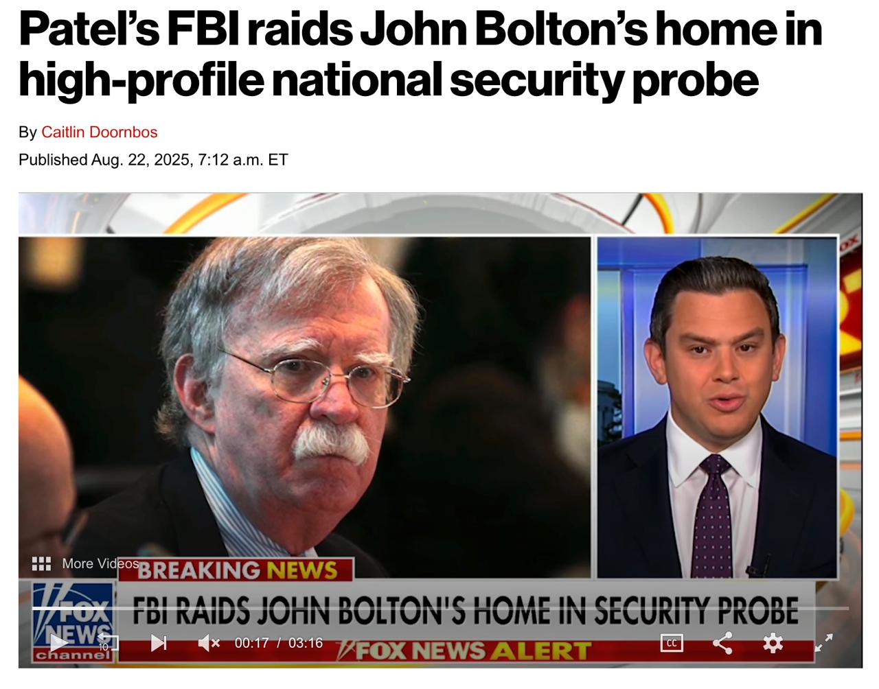 Агенти ФБР провели обшук у будинку колишнього радника Дональда Трампа з питань національної безпеки часів його першого терміну Джона Болтона, який зараз активно критикує президента США. Обшуки здійснюються в рамках розслідування, пов'язаного із секретною інформацією у його мемуарах.