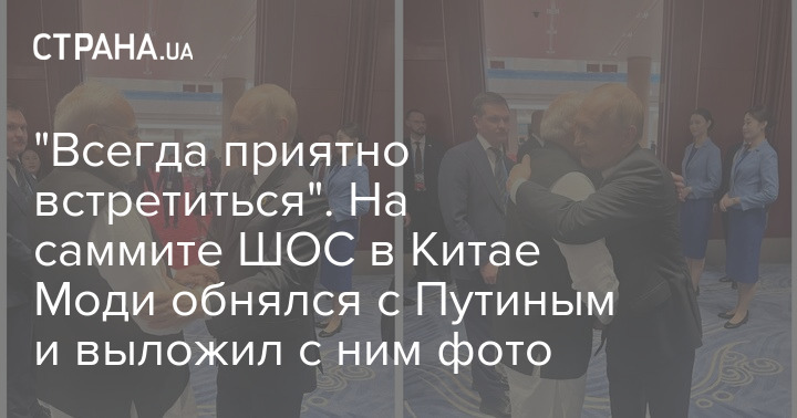 На саміті ШОС у Китаї прем'єр Індії Нарендра Моді обійнявся з главою РФ Володимиром Путіним та виклав фото з ним.
