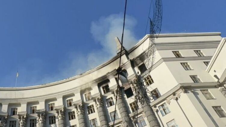 Нагадаємо, сьогодні вночі був масований удар по Києву. Серед іншого приліт був по будівлі Кабінету міністрів на вулиці Грушевського.