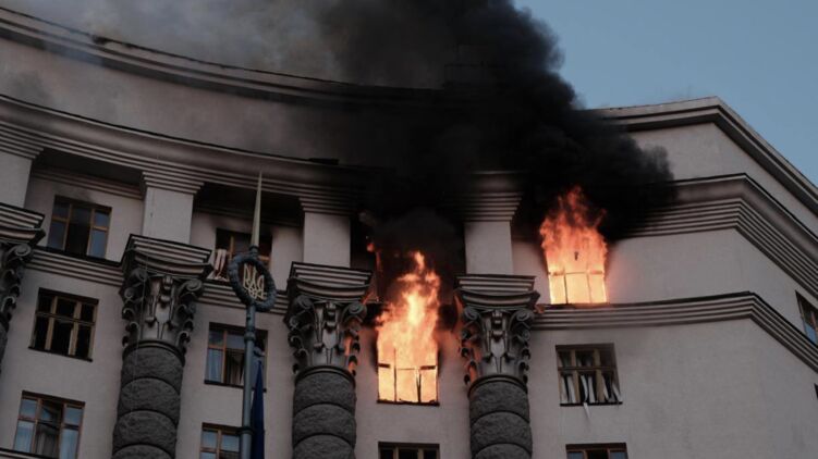 Нагадаємо, сьогодні вночі був масований удар по Києву. Серед іншого приліт був по будівлі Кабінету міністрів на вулиці Грушевського.