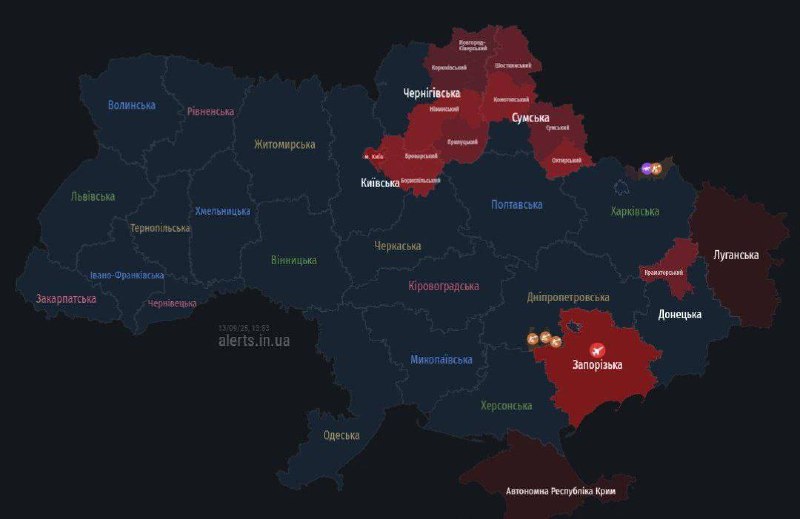 14.04 У Києві та низці областей повітряна тривога через наліт безпілотників. Йде робота ППО.