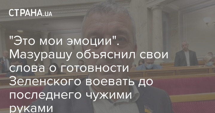 "Це мої емоції". Мазураш пояснив свої слова про готовність Зеленського воювати до останнього чужими руками