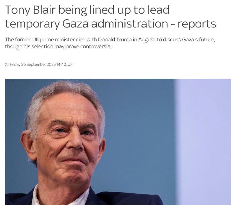 Колишній прем'єр-міністр Великобританії Тоні Блер готується очолити тимчасову адміністрацію з повоєнного відновлення сектору Гази. Він уже обговорив цю ідею із президентом США Дональдом Трампом. Його кандидатуру у Білому домі підтримали.