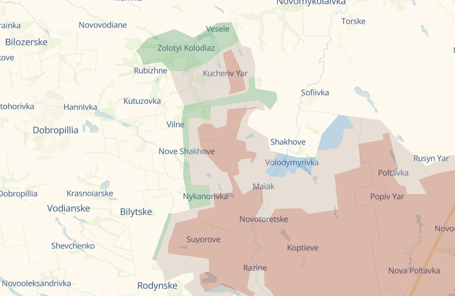 "Це створює нову загрозу: вже зараз ворог може отримати зручні позиції для роботи FPV-дронами по трасі, яка проходить поряд. Якщо йому вдасться просунутися далі і зайняти Вишневе, відкриється можливість завдавати ударів по Покровському та Олександрівці, фактично підтягуючи лінію фронту ще ближче до цих населених пунктів", - аналізує аналітика.