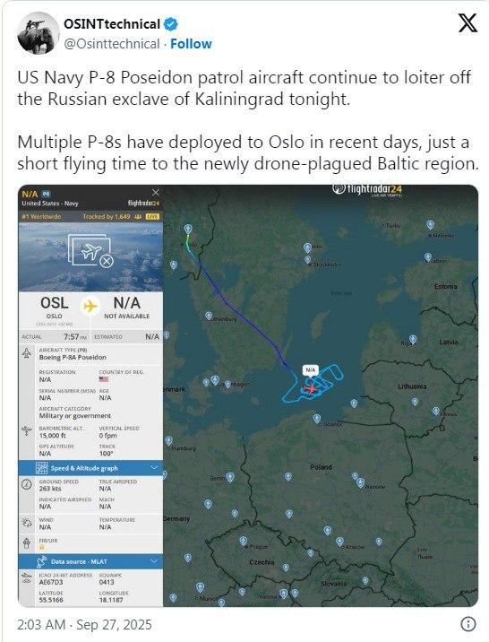 За даними Newsweek, ще минулого тижня ВМС США відправили один з літаків, що базувалися в Осло, в Балтійське море, до узбережжя Калінінграда. А норвезька преса повідомляє, що у вихідні американці розмістили кілька літаків P-8 Poseidon в аеропорту Осло Гардермуен.
