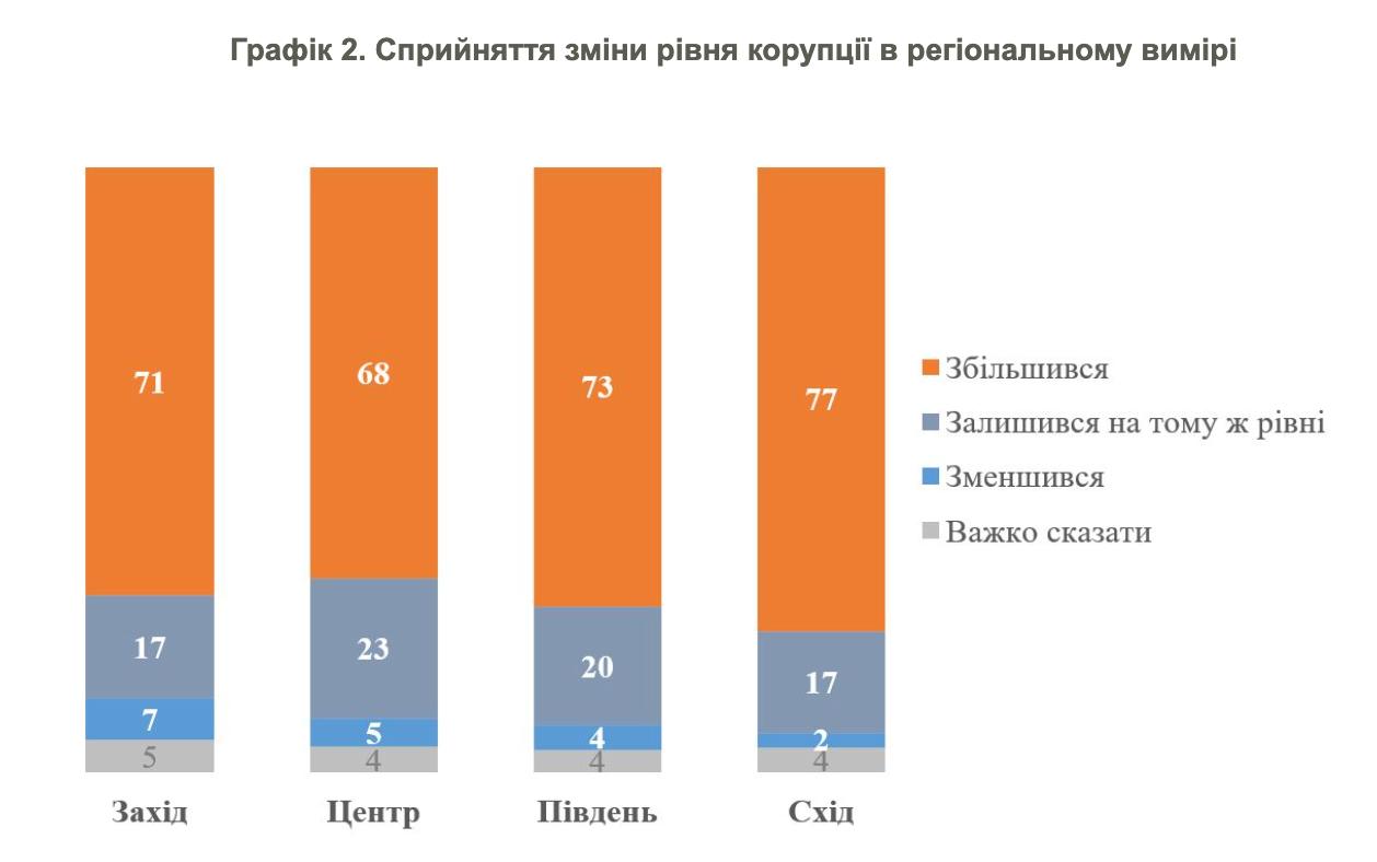 Найбільше корупція зросла для мешканців східних областей України (77%).