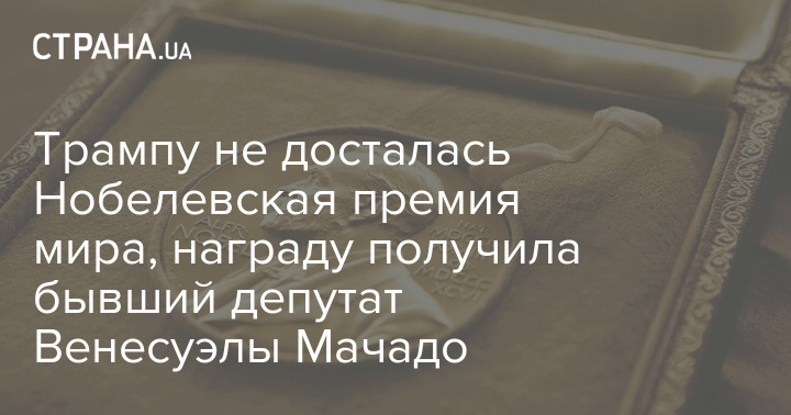 Президент США Дональд Трамп не отримав Нобелівської премії миру. Нагороду присудили колишньому депутату Венесуели Марії Коріні Мачадо "за її невпинну роботу із захисту демократичних прав народу Венесуели та за її боротьбу за досягнення справедливого та мирного переходу від диктатури до демократії".