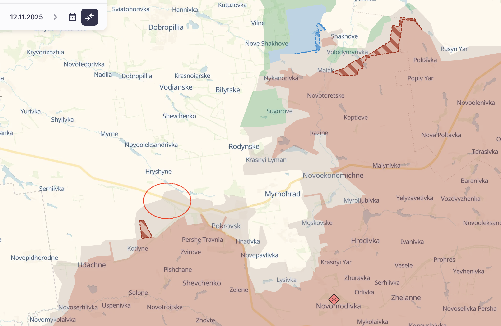 По-перше, з боку Котліно на захід від Покровська. Також "сіра зона" розширилася у бік Гришино, ключової бази ЗСУ на захід від міста, від якої бої йдуть за два кілометри.