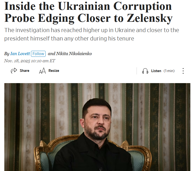 Про це пише американська газета The Wall Street Journal у статті "Розслідування корупції в Україні наближається до Зеленського".