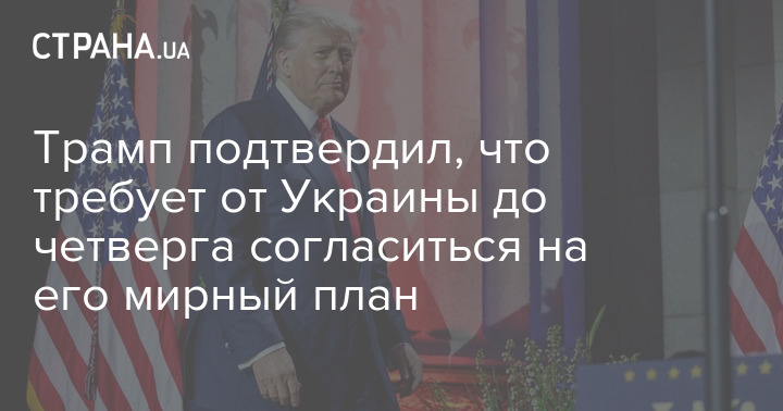 Президент США Дональд Трамп підтвердив, що вимагає від України погодитись на мирний план до четверга.