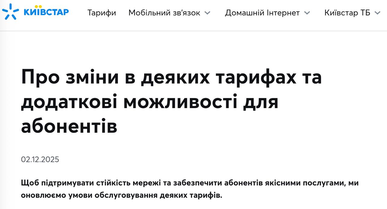 "Це рішення обумовлене зростанням вартості ключових ресурсів, зокрема електроенергії для підприємств, яка у вечірні години пік подорожчала на 60%. Через часті відключення електроенергії також значно збільшилася потреба в паливі для генераторів і логістики. важливими для цілодобової підтримки стабільності мережі", - пояснили у компанії.