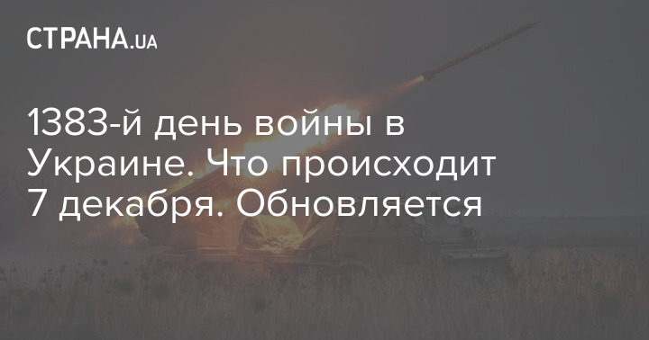 У неділю, 7 грудня, в Україні триває 1383-й день війни з Росією.