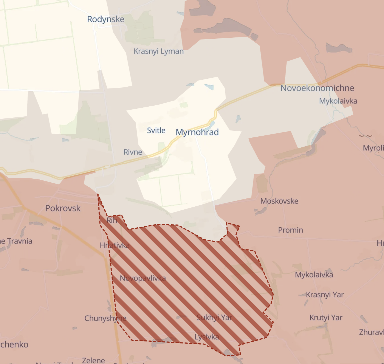 Також росіяни просунулися на південь від Мирнограда, що підтверджує нещодавню інформацію ЗМІ про вихід українських військ із Сухого Яру та Лисівки.