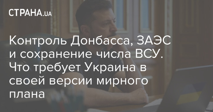 Контроль Донбасу, ЗАЕС та збереження числа ЗСУ. Що вимагає Україна у своїй версії мирного плану