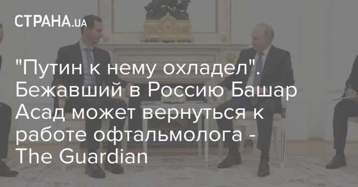 Колишній президент Сирії Башар Асад, який мешкає у підмосковній Рубльовці, може знову почати працювати офтальмологом.