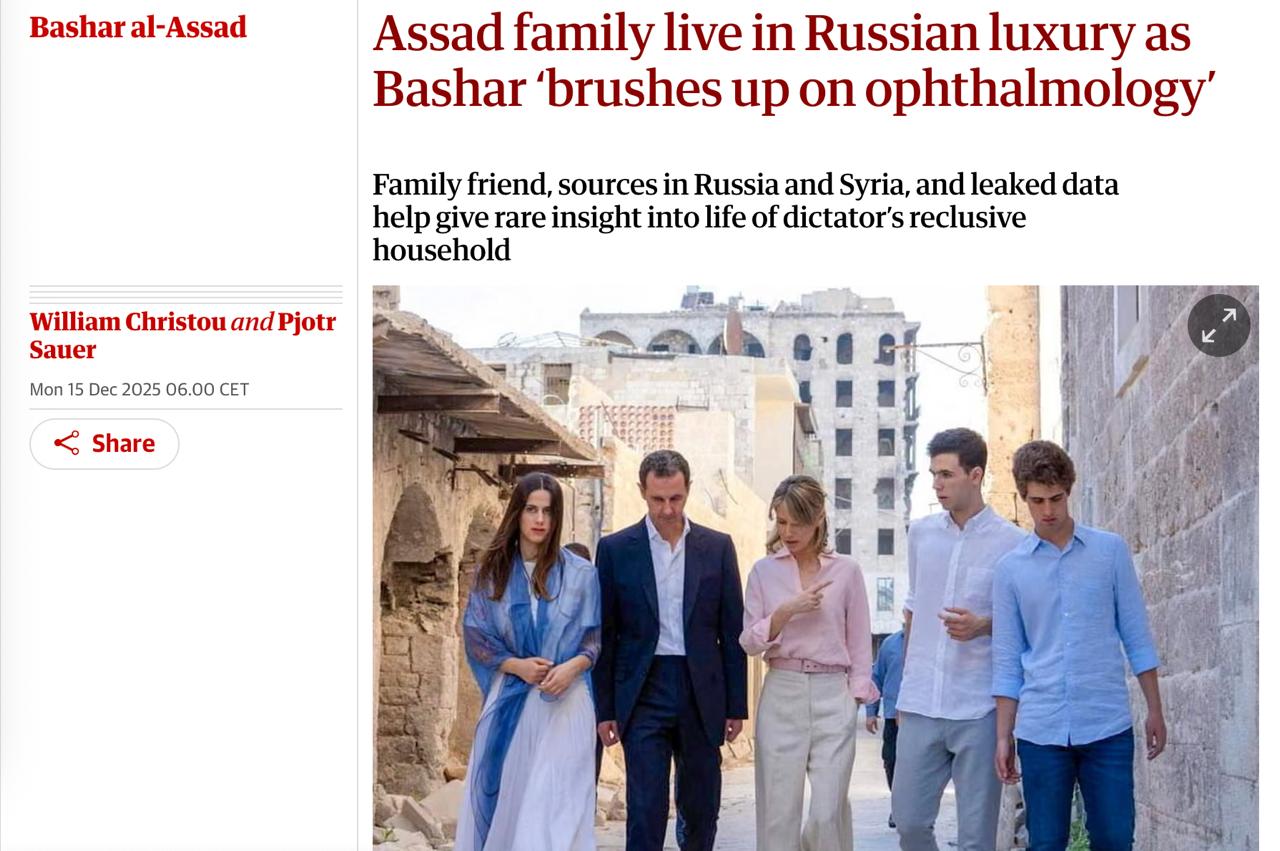 За його даними, Асад, який здобув освіту офтальмолога в Лондоні та Дамаску, після повалення в Сирії вчить російську мову і знову проходить медичні курси.