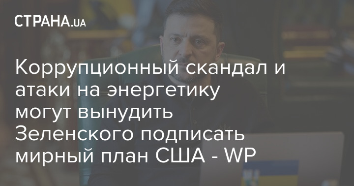 Корупційний скандал в Україні та удари по енергетичній інфраструктурі можуть змусити президента Володимира Зеленського до підписання мирного плану, який пропонує Вашингтон.