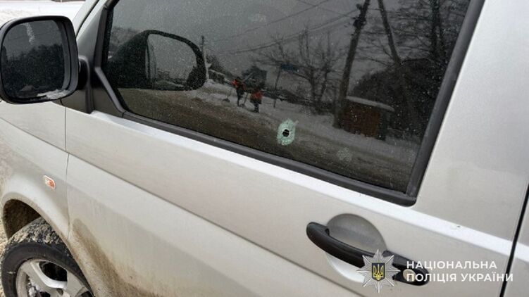 Внаслідок стрілянини постраждав лише мікроавтобус військкомів. Фото: Нацполіція