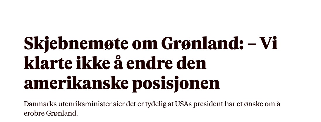 "В даний час у НАТО ведеться діалог про те, як ми можемо зміцнити безпеку в Арктиці, у тому числі в районах Гренландії і навколо неї. Поки ніяких висновків не зроблено, але ми проводимо оцінки в діалозі з союзниками. У цьому контексті Норвегія вирішила направити в Гренландію двох осіб зі Збройних сил з метою налагодити Сандвік.