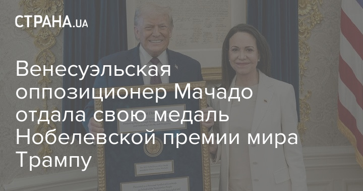 Венесуельська лідерка опозиції Марія Коріна Мачадо повідомила, що на зустрічі в Білому домі віддала свою медаль Нобелівської премії миру президенту США Дональду Трампу.