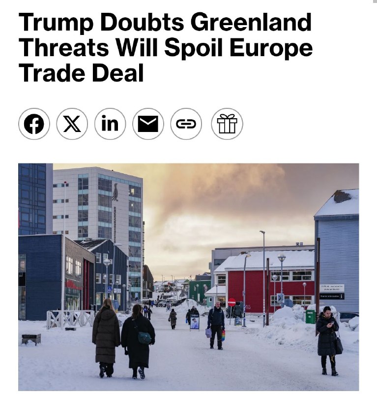 При цьому, зазначає агентство, вимога Трампа до Данії відмовитися від Гренландії все ще може бути хитрощами в переговорах з метою домогтися від Європи більш прийнятної для США торгової угоди.