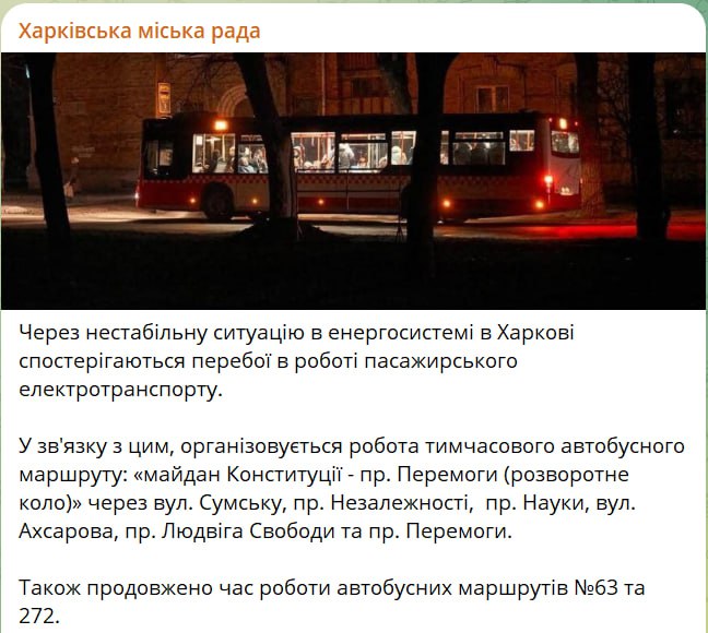 У Харкові відбулися масові відключення світла. Фото: Телеграм