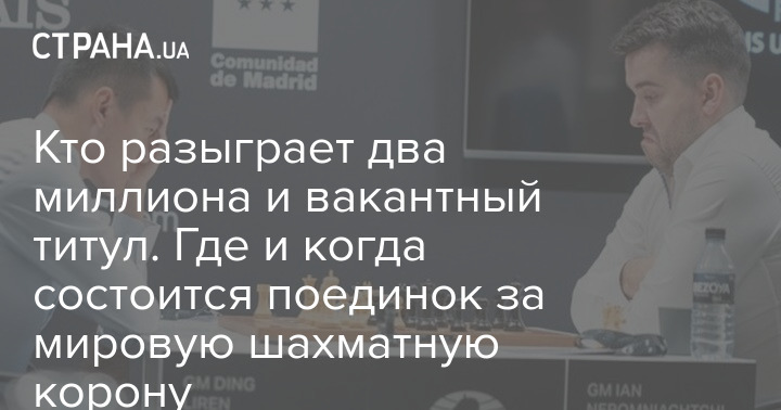 Хто розіграє два мільйони та вакантний титул. Де і коли відбудеться поєдинок за світову шахову корону