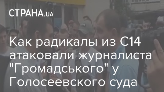 Появилось видео потасовки ультраправых радикалов C14 с журналистом "Громадського" Игорем Бурдыгой под зданием Голосеевского суда.