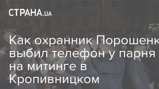 В интернете разместили видеозапись, на которой один из охранников президента Петра Порошенко на митинге в Кропивницком выбил из рук подростка мобильный телефон, на который он снимал главу государства вместе с другими людьми. Запись была опубликована в YouTube Натальей Высоцкой.
