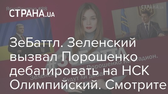 Сегодня, 3 апреля, кандидат в президенты Владимир Зеленский ответил своему оппоненту действующему главе страны Петру Порошенко на приглашение участвовать в дебатах. Об этом сообщает Олеся Медведева в новом выпуске видеоблога на YouTube-канале Страна.ua Ясно.Понятно.