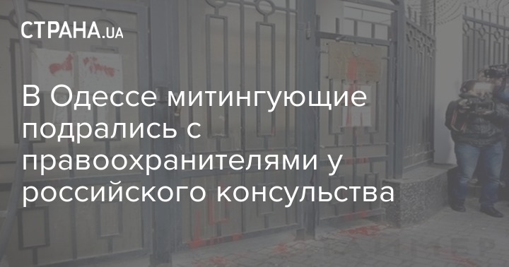 В Одессе участники акции в поддержку Савченко забросали Генеральное Консульство Российской Федерации яйцами, а главный вход залили красной краской.