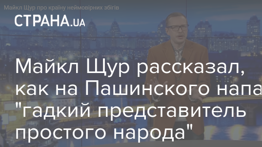 "Украина – это территория чудес, фантастических историй и невероятных совпадений. Нам говорят, что это правда, потому что это возможно. Это правда, потому что есть вероятность этого. Это – невероятное совпадение! Поверьте!. И мы верим. И я верю. Пашинский на ночной дороге, в лесу, остановился и вежливо попросил включить фары на автомобиле. А на него сразу напал алкоголик, сепаратист, агент Кремля, и давайте уж будем откровенными, этот гадкий представитель простого народа", - саркастически заметил Майкл Щур.